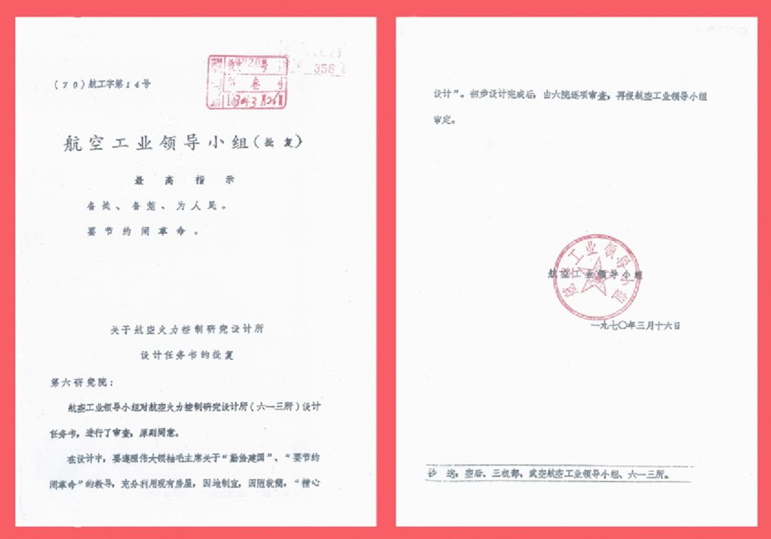 【1970年3月16日航空工业领导小组对613所设计任务书的批复】