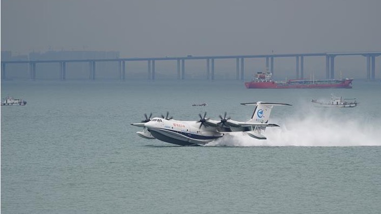 Sunday's successful flight from the sea is a major breakthrough for the aircraft following its maiden flight over land in 2017 and first takeoff from a water reservoir in 2018, said AVIC.