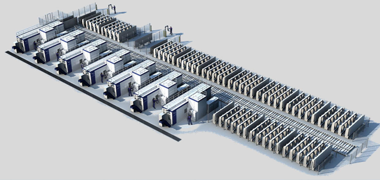 面对如此复杂的生产需求,KAI公司并未遵循传统的生产方式,即依据生产设备布局安排生产与零部件周转。相反,公司大胆引入精益生产理念,构建起一条高度自动化、柔性化的 A350 机翼肋板柔性生产线。该生产线集成了自动上料系统、5 轴加工中心设备、毛刺设备、自动荧光检测、自动 CMM 检测、自动厚度检测以及自动物流传送等一系列先进系统设备,全面满足 A350 机翼肋板的所有生产工艺要求。