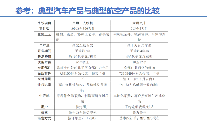 汽车行业与民用航空制造的异同