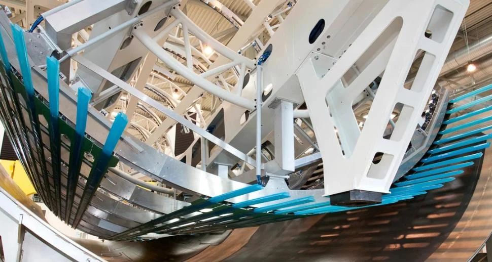 自动铺贴技术(简称AFP,AutomatedFibre Placement)工艺的特点是由机器人精确放置预浸渍料进行铺贴,PAG使用这种工艺来制造压力隔框和长达17米的机身壁板。