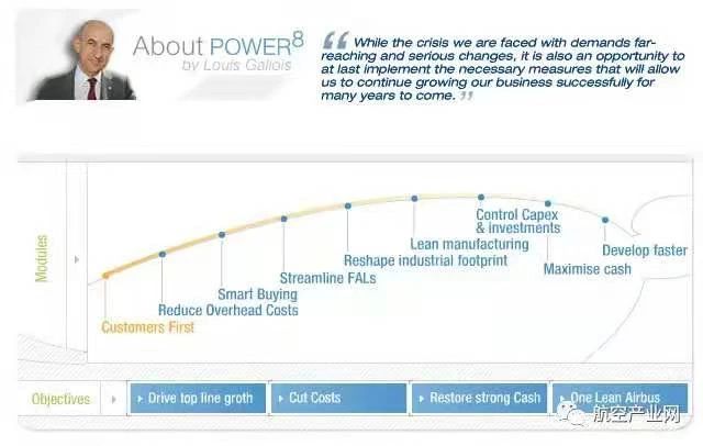 在2007年初,EADS公布了战略重组计划Power8(8大举措),该计划旨在精简集团、剥离几项非核心业务并削减成本,计划于2009年年初实施重组完毕,这一计划重塑了欧洲航空结构件的产业构图,EADS也于之后更名为空客集团。
