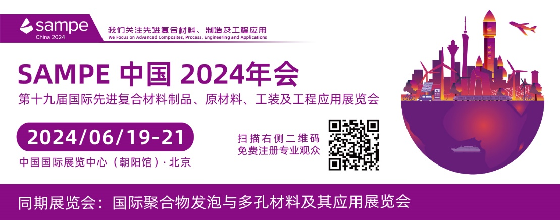 “SAMPE 中国 2024年会暨第十九届国际先进复合材料制品、原材料、工装及工程应用展览会及相关同期活动”将于 2024年6月19日-21日在中国国际展览中心(朝阳馆)举办。