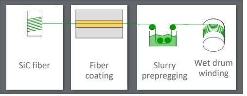 SiC纤维采用化学气相沉积(CVD)方法制备涂层,与基质结合形成预浸料。