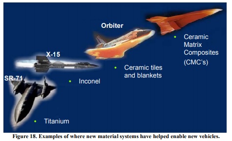 NASA的X-33在气动加热效应明显的机头和机翼前缘使用了C/C复合材料。新一代的高超声速飞机,CMC也是必不可少。