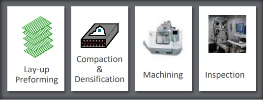 预浸料铺贴后经过压实、机械加工并通过检验后成为CMC零件。