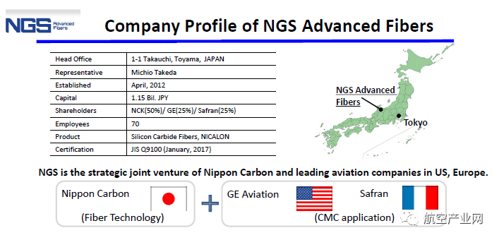 位于日本富山的NGS公司成立于2012年,日本的NCK持股50%,GE与赛峰各25%。据信是目前世界上规模最大的生产CMC纤维的企业。