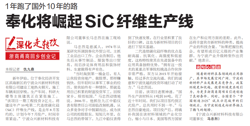 宁波日报关于SiC纤维生产线的相关报道