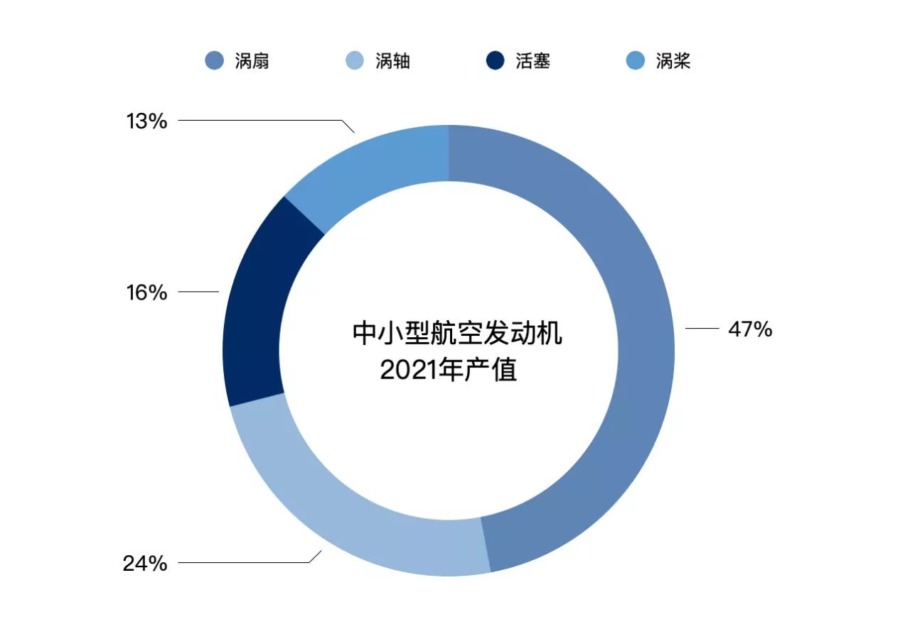 2021年全球中小型航空发动机产值占比 ©航空产业网