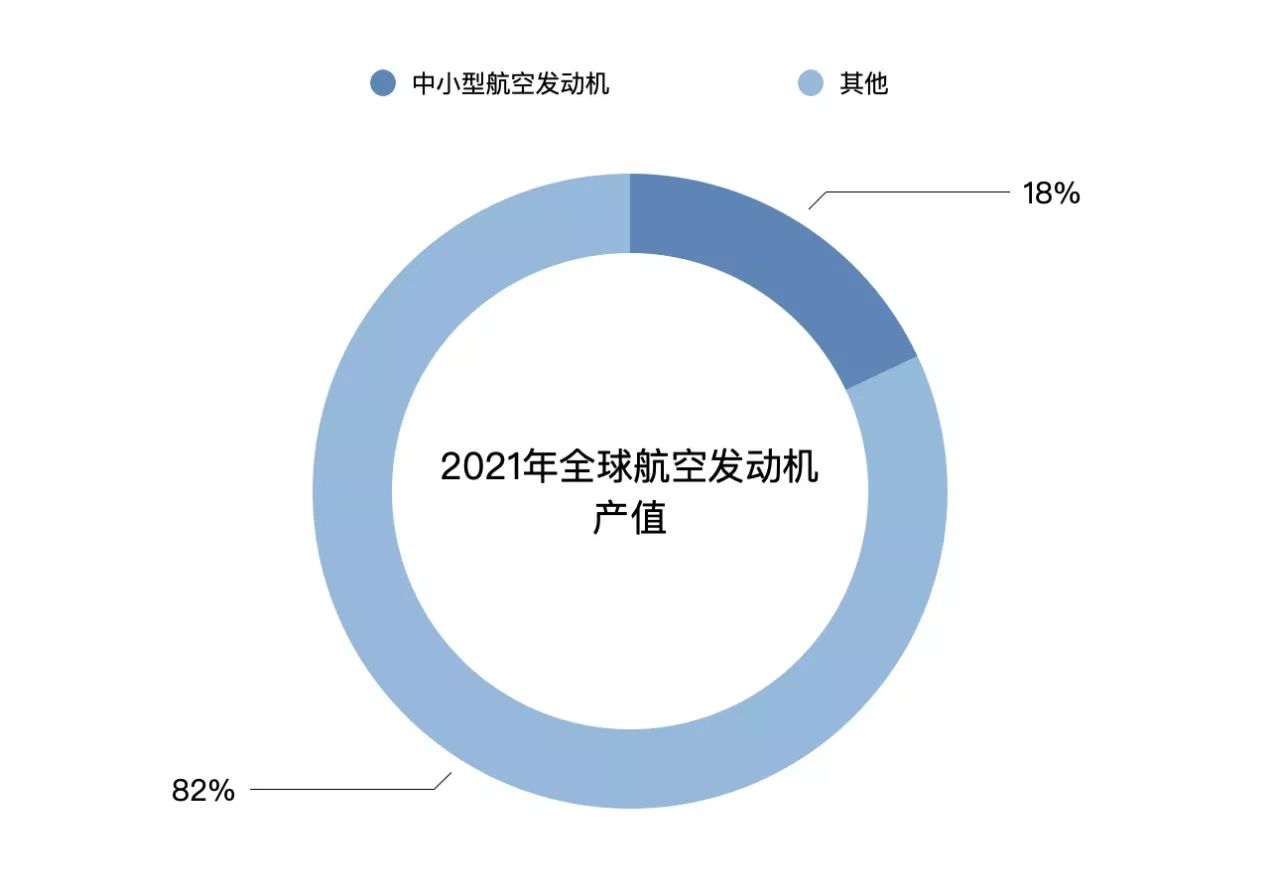 全球航空发动机市场,中小型航空发动机服役中的型号约144种。航空产业网估算,2021年,全球中小型发动机市场总产值约82.28亿美元。其中,通用航空领域的中小型发动机市场产值为48.80亿美元;军用无人机领域的中小型发动机市场产值为33.48亿美元。中小型航空发动机在全球航空发动机市场的产值占比约为18%。
