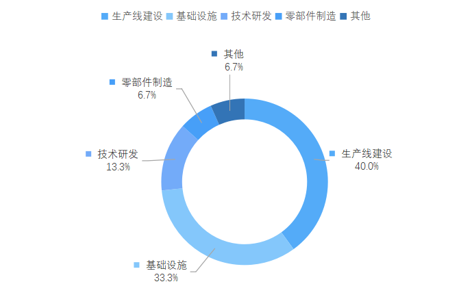 四川省内有关两机的项目中,占比较多的生产线建设类项目,约为40%;其次是基础设施类项目,占比约为33.3%;技术研发类项目占比约为13.3%;零部件制造类项目占比约为6.7%;另外,其他类项目占比约为6.7%。