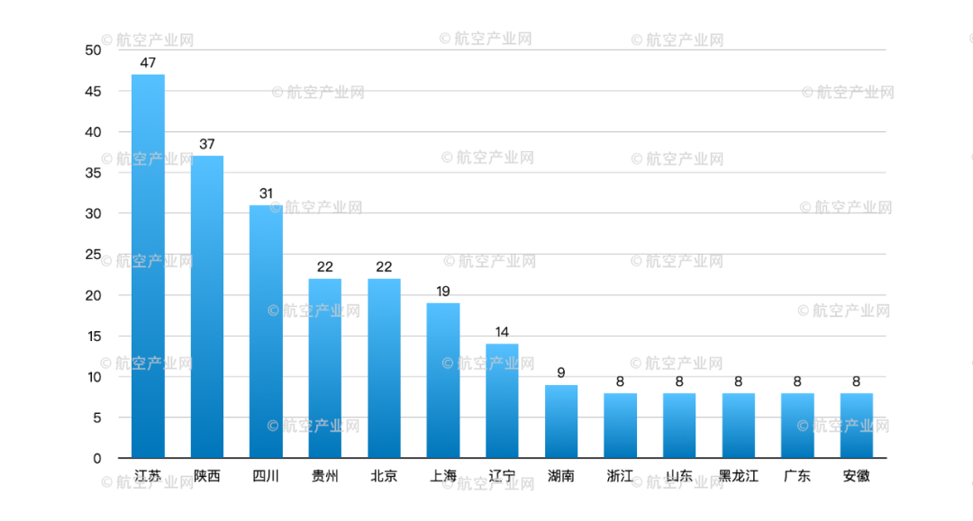 从地理位置分布上看,中国航空发动机产业链企业数量江苏、陕西、四川、贵州、北京位列前五,上海和辽宁次之。从今年的发展趋势来看,江苏省发动机产业链已有聚集效应,尤其是数量众多的民营企业与外资企业独具特色。