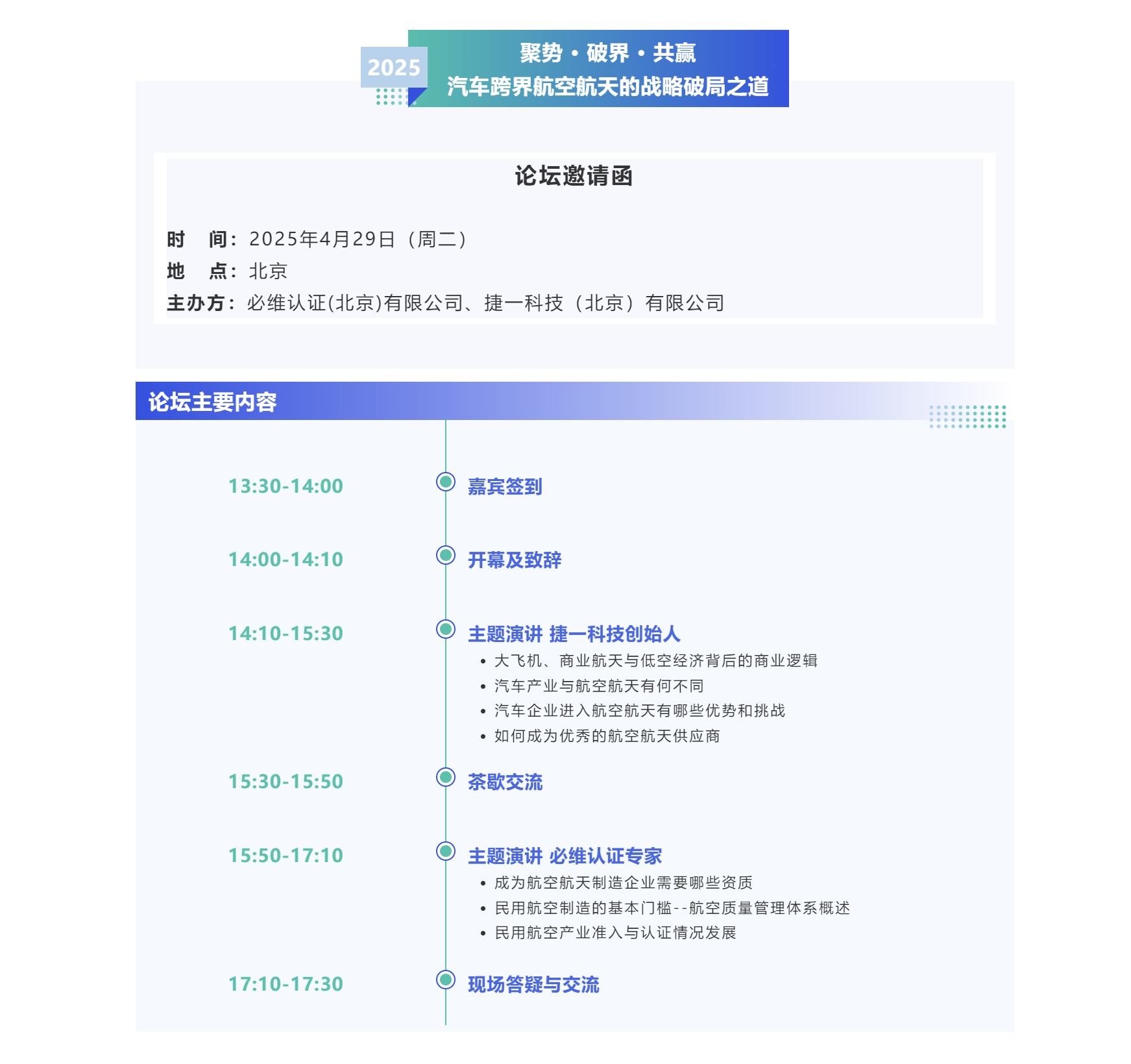 传统汽车制造企业具备可靠性技术积累和完整的研发体系,与航空航天市场有较高的技术同源性在中国大飞机供应链本土化以及商业航天、低空经济高速发展的关键期,捷一科技的专业服务团队可为您的企业制定切实可行的市场开发及产品研发策略,助您高效拓展航空航天业务,实现从汽车到航空航天的跨越发展。汽车企业进入航空航天市场的整体周期,可分为三个阶段: