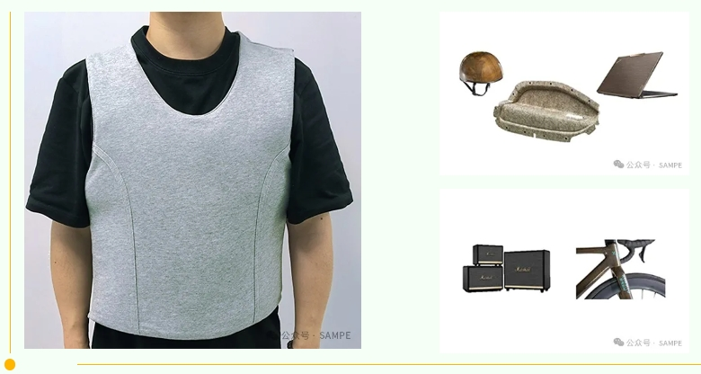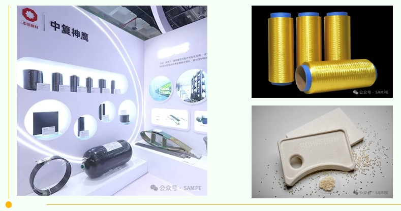 本届展览会上,东莞艾可迅、江苏集萃、廊坊飞泽、江苏澳盛、中科院宁波所、国际竹藤中心、上海晋飞、江苏美龙、山东双一、机科国创、咸宁海威、德翼高科、深圳零壹科技、山东卓利欧、云路复材、江西杰途新材、宁波摩通、沈阳欧施盾新材、北海豪旋、山西希本运动器材、江西碳诺科技、江西碳源复材、大江体育用品、江西奥森体育器材、新余市聚弘体育用品等代表性企业带来了在汽车结构与内饰部件、轨道交通零部件、风电产品、船舶及游艇、刹车片、热场材料、储氢瓶、低空飞行器、体育及休闲用品、乐器、医疗设备、3C电子产品、基础设施等领域的创新应用产品。