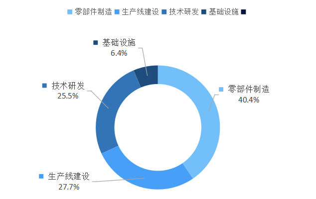 陕西省内两机相关项目主要集中在零部件制造类,有近20个项目,占比约为40.4%;生产线建设类项目有13个,占比约27.7%;技术研发类项目有12个,占比约为25.5%;而基础设施建设类项目有3个,占比约6.4%。