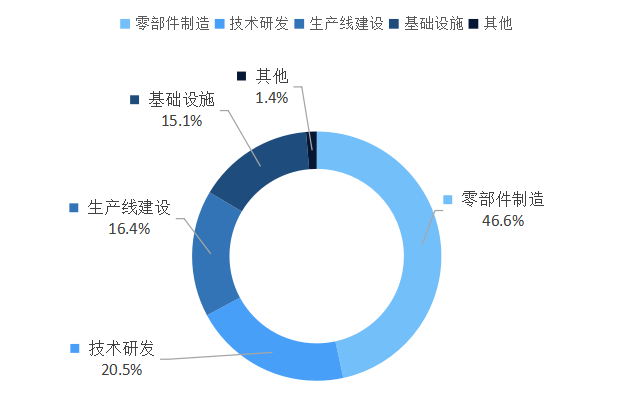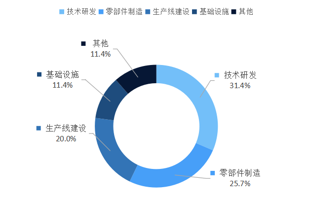 四川省内有关两机的项目主要集中在技术研发和零部件制造两类,分别有11个、9个项目,占比分别约为31.4%和25.7%;生产线建设类项目有7个,占比约为20%;基础设施建设和其他类项目都有4个,占比约为11.4%。