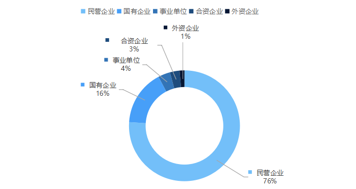 从企业所有制来看,当前大型民用无人机制造企业中民营企业占据较大比重,数量占比达76%;其次是国有企业,占比16%。