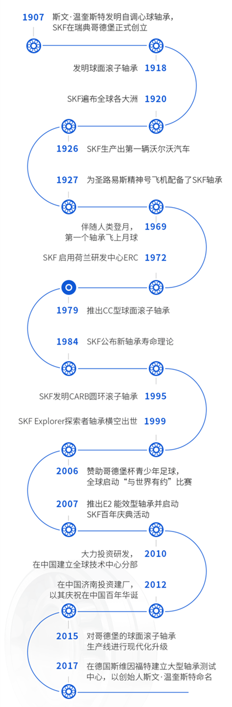1907年温奎斯特创立了Svenska Kullagerfabriken(瑞典语:瑞典滚珠轴承制造公司),简称SKF。