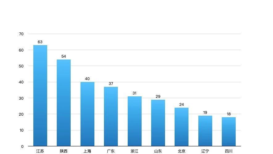 以此基准鸟瞰全国,航空材料企业地理分布最多的省级行政区依次是江苏、陕西、上海、广东、浙江,均有30家以上的企业分布。