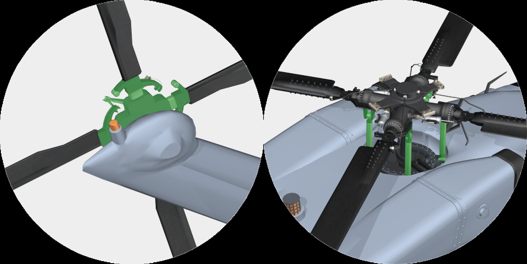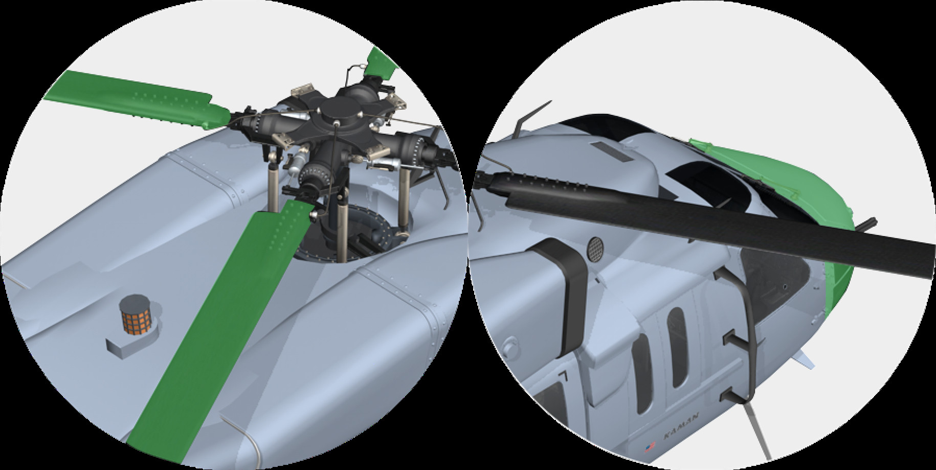Kaman 航空系统产品可提高Hontek旋翼叶片防侵蚀涂层。Kaman特种/航空轴承可设计和制造用于叶片控制的变桨轴承以及专为高负荷叶片减震器设计的轴承。RWG部门可为飞控系统和旋翼桨毂提供轴承与连杆。